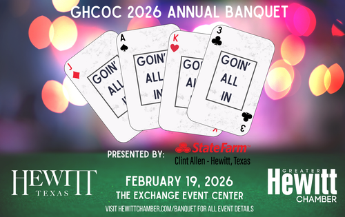 This signature event is a popular one with an average attendance of 400 or more, which begins with live music, a catered dinner, casino, cash bar, raffle and plenty of time for networking. Our event will include the President’s annual report, a brief speech from the Chamber president, City of Hewitt update and award recognition followed by the Scholarship award presentation. Sponsorships and tickets now available!